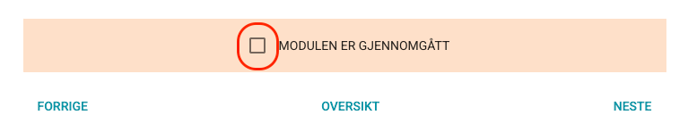 Huk av for at modulen er gjennomgått nederst i teoridelen.