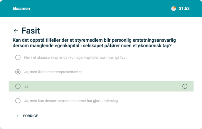 Hvis du har svart riktig på minimum 20 spørsmål vil du kunne se fasit på de spørsmålene du har svart feil på.